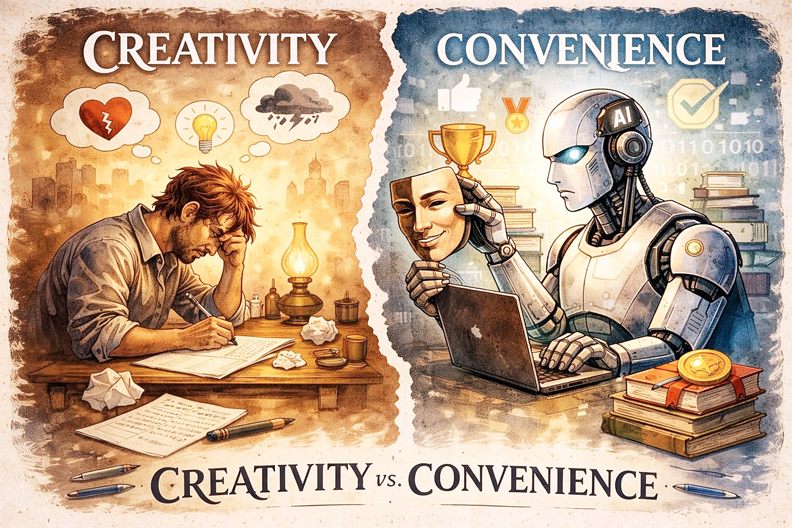 कहा जाता है कि हर नई तकनीक अपने साथ सुविधा लेकर आती है, पर कुछ तकनीकें धीरे-धीरे हमारी सोच और आदतों को भी बदल देती हैं। कृत्रिम बुद्धिमत्ता आज ऐसे ही मोड़ पर खड़ी है। उसने लिखने की गति बढ़ाई है, उसे आसान और सुलभ बनाया है; पर उसी अनुपात में उसने सृजन के अर्थ को धुंधला भी किया है। अब प्रश्न यह नहीं रह गया कि “लिखा कितना अच्छा है”, बल्कि यह बन गया है कि “लिखा किसने है और किस तरह लिखा है।”