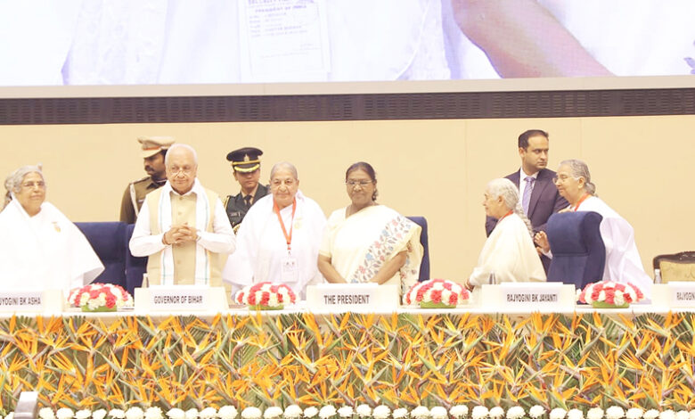 प्रातःकालीन सत्र में माननीय राष्ट्रपति द्रौपदी मुर्मू की गरिमामयी उपस्थिति में सम्पन्न हुआ। इस अवसर पर राष्ट्रपति जी ने कर्मयोग की महत्ता पर प्रकाश डालते हुए कहा कि जब कर्म आत्मिक चेतना, निष्ठा और निष्काम भाव से किया जाता है, तभी वह राष्ट्र, समाज और मानवता के कल्याण का माध्यम बनता है। उन्होंने कर्मयोग को व्यक्तिगत जीवन, प्रशासनिक व्यवस्था तथा राष्ट्र निर्माण के लिए अत्यंत आवश्यक बताया। समृद्ध राष्ट्र के संकल्प को साकार करने के लिए हर एक जिम्मेदार नागरिक सक्रिय भागीदारी करे जिसके लिए जीवन में आध्यात्मिकता और नैतिकता का होना आवश्यक है। अनैतिक आचरण से नैतिक मूल्यों का ह्रास होता है। निःस्वार्थ सेवा का भाव शांतिपूर्ण और न्यायपूर्ण समाज का निर्माण करता है।