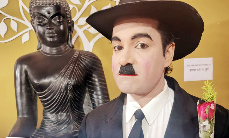 चार्ली चैपलिन द्वितीय का युद्ध ख़त्म करने को लेकर अपील का अंदाज़ हाथ में नो वार की तख्ती और गुलाब का फूल लेकर लोगों में उत्साह जगा रहें हैं।