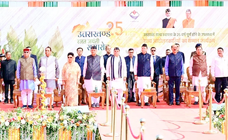 इसी क्रम में उत्तराखण्ड राज्य स्थापना के रजत जयंती वर्ष के अवसर पर मुख्यमंत्री ने पुलिस लाइन में आयोजित राज्य आंदोलनकारी सम्मान समारोह में राज्य आंदोलनकारियों और शहीद राज्य आंदोलनकारियों के परिवारजनों को सम्मानित किया। कचहरी परिसर शहीद स्थल और पुलिस लाइन देहरादून में इस अवसर पर राज्य आंदोलनकारियों पर हेलीकॉप्टर से पुष्प वर्षा भी की गई ।