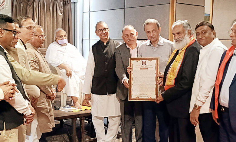 महासभा के अध्यक्ष महेन्द्र नाहटा और प्रधान न्यासी सुरेश गोयल का अभिनंदन