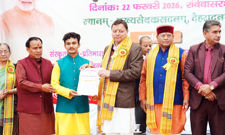 देहरादून : मुख्यमंत्री श्री पुष्कर सिंह धामी ने संस्कृत छात्र प्रतिभा सम्मान कार्यक्रम में विद्यार्थियों को गार्गी बालिका संस्कृत छात्रवृत्ति, डॉ. भीमराव आंबेडकर अनुसूचित जाति, अनुसूचित जनजाति संस्कृत छात्रवृत्ति प्रदान की। उन्होंने प्रतियोगी परीक्षा स्वाध्याय केन्द्र एवं ई-संस्कृत संभाषण शिविर का वर्चुअल शुभारंभ और उत्तराखण्ड संस्कृत विश्वविद्यालय के त्रैमासिक पत्र संस्कृत वार्ता का विमोचन भी किया।