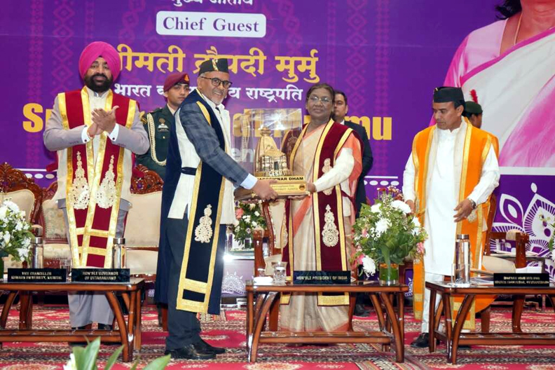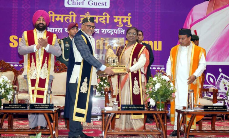 देहरादून : कुमाऊँ विश्वविद्यालय, नैनीताल के दीक्षांत समारोह को संबोधित करते हुए राष्ट्रपति श्रीमती द्रौपदी मुर्मु ने कहा कि शिक्षा किसी भी राष्ट्र के विकास की नींव होती है। इसलिए, शिक्षा का उद्देश्य केवल विद्यार्थियों की बुद्धि और कौशल का विकास करना ही नहीं, बल्कि उनके नैतिक बल और चरित्र को भी सुदृढ़ करना होना चाहिए।
