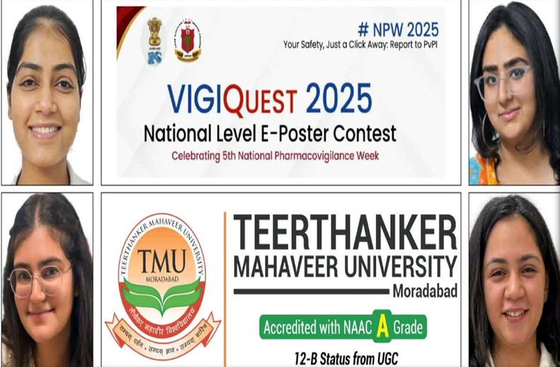तीर्थंकर महावीर यूनिवर्सिटी के मेडिकल कॉलेज एंड रिसर्च सेंटर के एमबीबीएस स्टुडेंट्स प्रियांशा चावला, रिया चेची, निष्ठा रानी और अनन्या चावला राष्ट्रीय स्तर की ई-पोस्टर प्रतियोगिता विजीक्वेस्ट 2025 में अव्वल