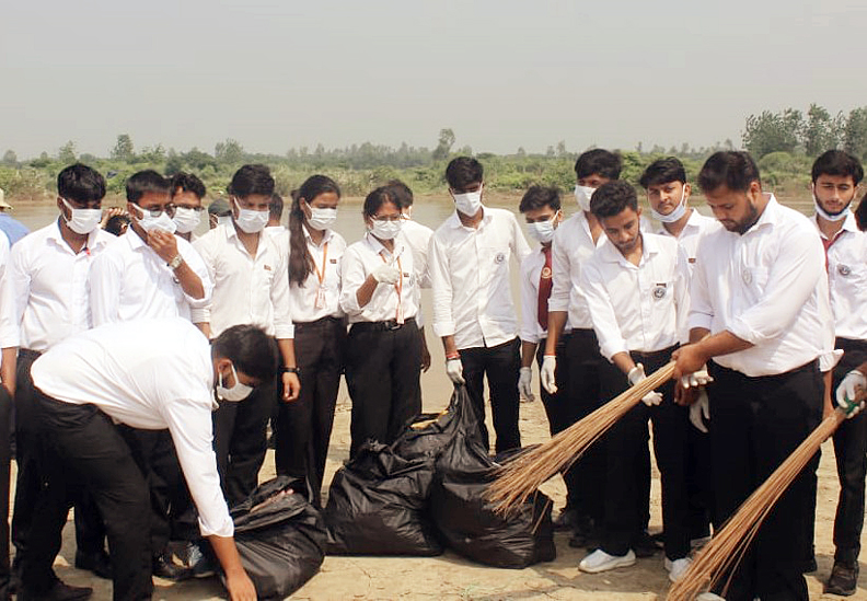 Ganga Champions Club of TMU Agriculture College organised a clean and awareness campaign at Ramganga Ghat