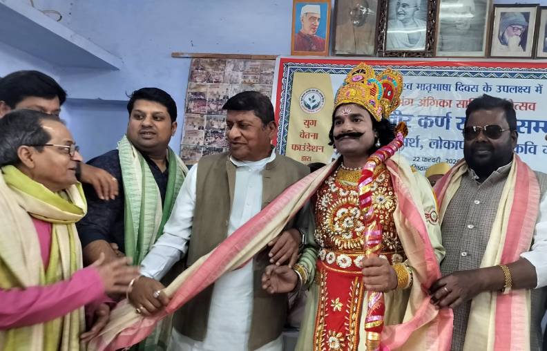 भागलपुर : भागलपुर के स्थानीय गांधी शांति प्रतिष्ठान केंद्र भागलपुर में युग चेतना फाउंडेशन, अंग-जन-गण,अंग मदद फाउंडेशन और अंगिका सभा फाउंडेशन के संयुक्त तत्वावधान में विश्व मातृभाषा दिवस के उपलक्ष्य में रविवार को आयोजित दानवीर कर्ण राष्ट्रीय सम्मान समारोह में हीरो राजन कुमार को दानवीर कर्ण राष्ट्रीय सम्मान से सम्मानित किया गया।यह सम्मान शहर के प्रख्यात चिकित्सक डॉ. डी.पी. सिंह के द्वारा प्रदान किया गया। यह सम्मान जिला परिषद के पूर्व अध्यक्ष समाजसेवी डॉ.शंभू दयाल खेतान,शहर के जाने-माने चिकित्सक प्रो. डॉ. रतन कुमार मंडल,डॉ. रमेश आत्मविश्वास समेत अन्य प्रतिष्ठित अतिथियों की उपस्थिति में दिया गया।
