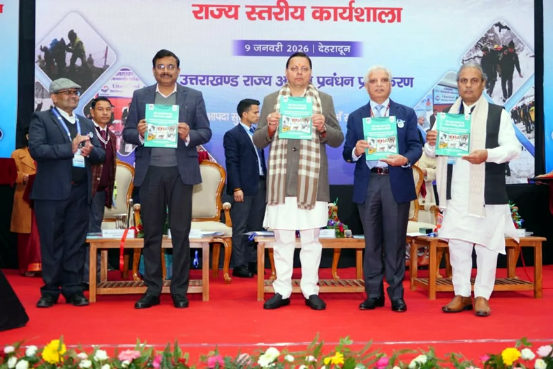 देहरादून : मुख्यमंत्री पुष्कर सिंह धामी ने सर्वे ऑफ इंडिया ऑडिटोरियम, हाथीबड़कला में ‘शीतलहर पूर्व तैयारी’ विषय पर आयोजित एक दिवसीय कार्यशाला का शुभारंभ किया। इस अवसर पर उन्होंने शीतलहर, बाढ़, मॉक ड्रिल, हवाई यातायात सहायता की एस.ओ.पी., आपदा प्रबंधन विभाग के नव वर्ष कैलेंडर 2026 एवं आपदा प्रबंधन हस्तपुस्तिका का विमोचन किया। कार्यक्रम में युवा आपदा मित्रों एवं वर्ष 2025 में आपदा के दौरान राहत एवं बचाव में सराहनीय कार्य करने वाले लोगों को भी सम्मानित किया गया। आपदा प्रबंधन के लिए स्टेट बैंक ऑफ इंडिया द्वारा उपलब्ध कराए गए चार वाहनों को भी मुख्यमंत्री ने फ्लैग ऑफ किया।