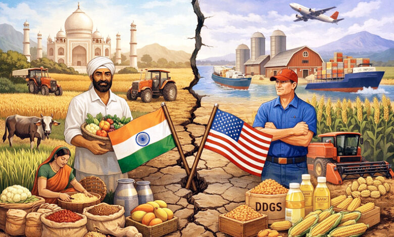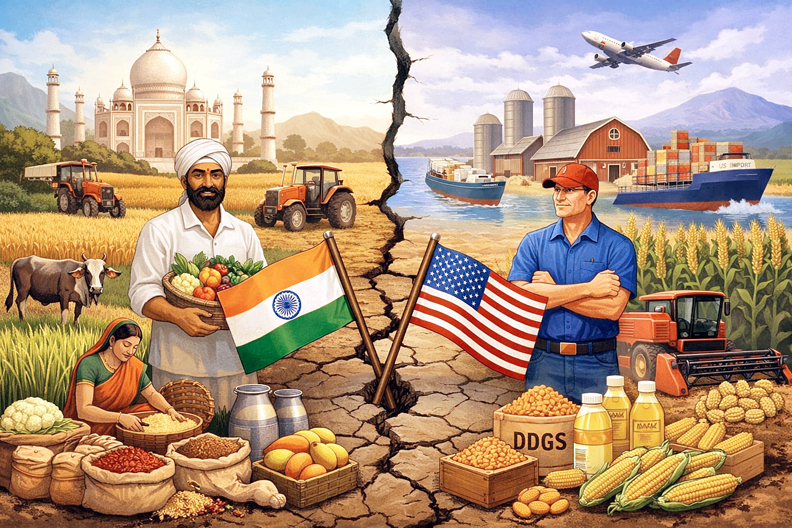 किन्तु इस समझौते का दूसरा पक्ष कहीं अधिक जटिल और संवेदनशील है। अमेरिका अपने किसानों को व्यापक सब्सिडी प्रदान करता है, जिससे उसके कृषि उत्पाद अंतरराष्ट्रीय बाजार में अत्यंत प्रतिस्पर्धी बन जाते हैं। यदि ऐसे उत्पाद—जैसे DDGS, सोयाबीन तेल और ज्वार—भारतीय बाजार में बड़े पैमाने पर प्रवेश करते हैं, तो घरेलू किसानों को मूल्य प्रतिस्पर्धा में गंभीर नुकसान उठाना पड़ सकता है। इससे कृषि उत्पादों की कीमतों में गिरावट आ सकती है, जो पहले से ही आय संकट से जूझ रहे किसानों के लिए और अधिक चुनौतीपूर्ण स्थिति उत्पन्न करेगी।