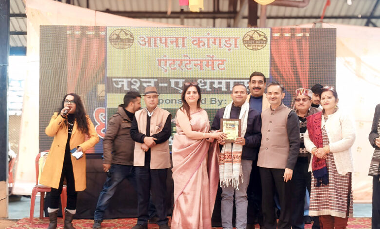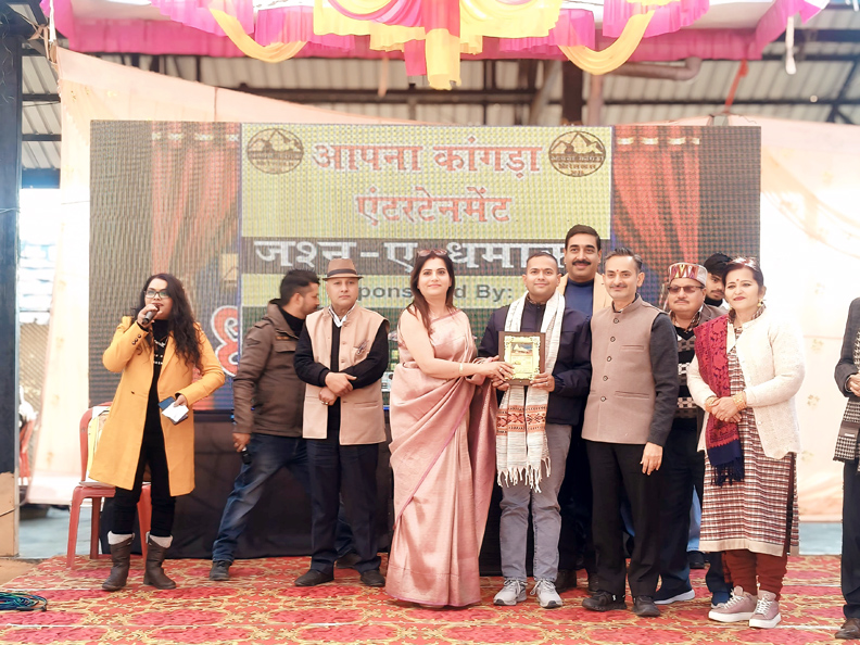 कांगड़ा : आपना कांगड़ा एंटरटेनमेंट के बैनर तले हर बर्ष की तरह इस बर्ष भी जश्न ए धमाका आयोजित किया गया, जिसमें प्रतिभागियों को हिमालयन सुपर स्टार टाइटल अवार्ड से नवाजा गया और नशे से दूर रहने का समस्त हिमाचल प्रदेश में संदेश दिया गया। मुख्य अतिथि हिमाचल पथ परिवहन निगम के उपाध्यक्ष श्री अजय वर्मा जी ने दीप प्रज्वलित कर कार्यक्रम का शुभारंभ किया गया, बही दूसरी तरफ युवा दिलों की धड़कन मनोज ठाकुर और समाजसेवी मोहिंदर सिंह राणा जी, युवा कवि लेखक डॉ.राजीव डोगरा ने अपना कीमती समय देकर कार्यक्रम में चार चांद लगाए। इस अवसर पर हिमाचल प्रदेश की नंबर वन टिंकू विहान और देशराज राणा जी को हिमाचल प्रदेश का नंबर वन झांकी कलाकार से नवाजा गया। संचालक सुमित गुप्ता ने बताया कि हिमाचल प्रदेश और बाहरी राज्यों के उभरते हुए कलाकारों को मंच देना उनकी प्राथमिकता है। कार्यक्रम में आए हुए मेहमानों ने कांगडी धाम का भी आनंद लिया।