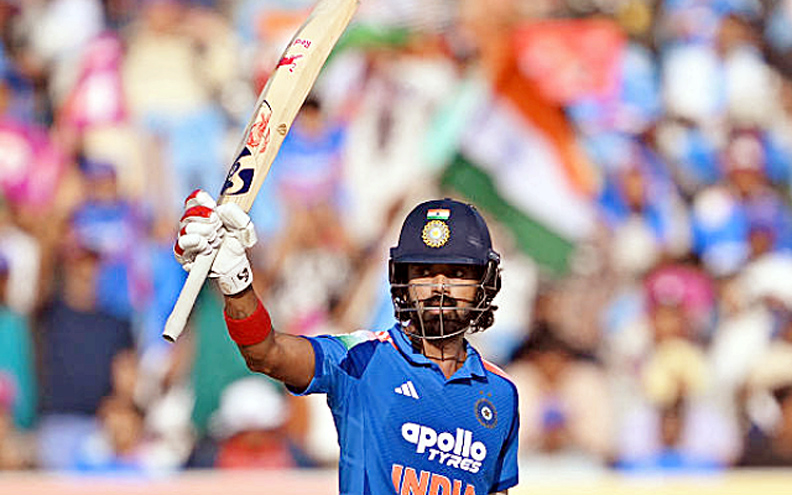 नई दिल्ली : विकेटकीपर बल्लेबाज केएल राहुल के अविजित शतक और कप्तान शुभमन गिल के अर्द्धशतक की बदौलत भारत ने बीच के ओवरों में 19 रन के भीतर कप्तान शुभमन गिल, श्रेयस अय्यर और विराट कोहली के रूप में तीन विकेट 19 रन के भीतर खोने के बावजूद निर्धारित 50 ओवर में राजकोट में पहले बल्लेबाजी की दावत न्यूजीलैंड के खिलाफ दूसरे वन डे अंतर्राष्ट्रीय क्रिकेट मैच में 50 ओवर में सात विकेट पर 284 रन का चुनौतीपूर्ण स्कोर बनाया। केएल राहुल ने अपने वन डे अंतर्राष्ट्रीय करियर का आठवां शतक जड़ा। केएल राहुल ने पारी के 49 वें और तेज गेंदबाज काइल जेमिसन के आखिरी ओवर की अंतिम गेंद को लॉन्ग ऑन के उपर से सीधा छक्का जड़ कर 87 गेंद खेल कर एक छक्के और नौ चौकों की मदद से पूरा किया। कप्तान शुभमन गिल ने सीरीज का अपना लगातार दूसरा अर्द्धशतक जड़ा। तेज गेंदबाज क्रिस्टियन क्लार्क (3/56) न्यूजीलैंड के सबसे कामयाब गेंदबाज रहे। केएल राहुल ने भारत के चार विकेट 118 रन गंवाने के बाद केएल राहु़ल ने रवींद्र जडेजा ( 27 रन, 44 गेंद, एक चौका) के साथ पांचवें विकेट के लिए 73, नीतिश रेड्डी (20 रन, 21 गेंद, एक छक्का) के साथ छठे विकेट के लिए 57 रन तथा मोहम्मद सिराज (अविजित 2 रन, 3 गेंद) के साथ आठवें विकेट के 26 रन की अटूट भागीदारिया कर भारत को मजबूत स्कोर तक पहुंचाने में अहम भूमिका निभाई। केएल राहुल 92 गेंद खेल एक छक्के और 11 चौकों की मदद से 112 रन बनाकर अविजित रहे।