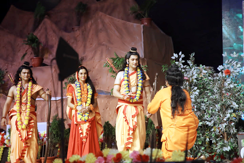 आज मुंबई फिल्म इंडस्टी, टीवी जगत के साथ साथ एनएसडी के मंझे हुए कलाकारों द्वारा भगवान राम के विभिन्न रूपों की लीला का मनमोहक मंचन हुआ। लीला की शुरुआत सुतीक्ष्ण प्रसंग, अगस्त्य मुनि से भेंट, पंचवटी प्रसंग, सूर्पणखा का नाक कान भेदन, सीता का अग्नि में प्रवेश, खर-दूषण वध, सीता हरण, रावण-जटायू युद्ध, जटायू मोक्ष तक की लीला का मंचन किया गया। विशेष साउंड इफेक्ट्स और डिजिटल एवं एआई तकनीक से जटायु मोक्ष आदि लीला के आकर्षक दृश्यों ने दर्शकों को मंत्रमुग्ध कर दिया। सोने का मृग देख सीता जी द्वारा हिरन को पाने की जिद, भगवान राम द्वारा मृग का पीछा करने के दृश्य आर्टिफिशियल एआई तकनीक से पेश हुए।