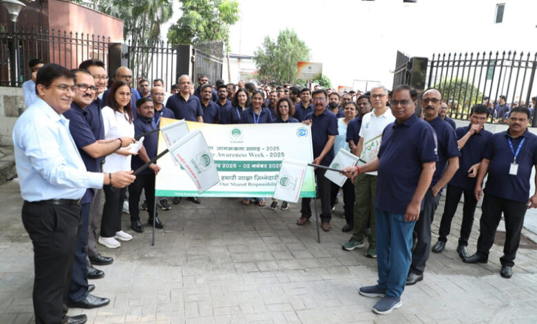 मुंबई (अनिल बेदाग) : श्री शाजी के. वी., नाबार्ड के अध्यक्ष ने केन्द्रीय सतर्कता आयोग की थीम “सतर्कता: हमारी साझी जिम्मेदारी” के अनुरूप आयोजित वॉकाथॉन को हरी झंडी दिखाकर रवाना किया। इस कार्यक्रम ने यह संदेश दिया कि सतर्कता एक सामूहिक कर्तव्य है, जिसे प्रत्येक व्यक्ति और संस्था को मिलकर निभाना चाहिए ताकि नैतिक शासन की नींव को और अधिक मजबूत बनाया जा सके।नाबार्ड ने सतर्कता जागरूकता सप्ताह 2025 (27 अक्टूबर से 2 नवम्बर 2025 तक) के उपलक्ष्य में इस वॉकाथॉन का आयोजन किया। इस पहल का उद्देश्य ईमानदारी की भावना और सामूहिक जिम्मेदारी को बढ़ावा देना था, जो इस वर्ष की थीम “सतर्कता: हमारी साझी जिम्मेदारी” को साकार करता है।