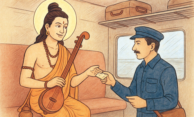 ”ऐसा है प्रभु, क्या आपका वाहन मूषक आपके अतिरिक्त दो अन्य देवताओं के साथ सवारी कर सकता है… कदापि नहीं, किंतु 80 सीट वाले अनारक्षित डिब्बे में दो सौ से अधिक यात्रियों की रेलमपेल के साथ नियमित चलने वाली रेल वाहन की वहन क्षमता का अंदाजा आप स्वयं लगा सकते हैं।” नारद जी ने चुटकी ली।