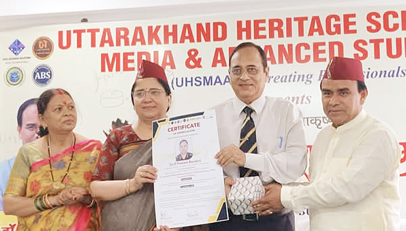 देहरादून : उत्तराखंड हेरिटेज स्कूल ऑफ मीडिया एंड एडवांस स्टडीज में डॉ सर्वपल्ली राधाकृष्णन राष्ट्रीय शिक्षक सम्मान 2025 के उपलक्ष्य में कार्यक्रम आयोजित किया गया जिसमें बतौर मुख्य अतिथि कैबिनेट मंत्री डॉ. धन सिंह रावत ने प्रतिभाग किया। इस अवसर पर शिक्षा के क्षेत्र में उत्कृष्ट योगदान देने वाले शिक्षाविदों, शिक्षकों एवं शिक्षण संस्थाओं को सम्मानित किया।