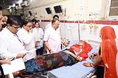 अस्पताल में घायलों और परिजनों से की मुलाकात, चिकित्सकों को उपचार के लिए दिए निर्देश