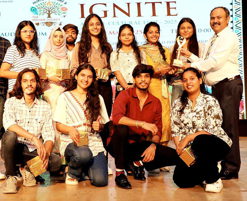इग्नाइट 2025 में प्रकृति और भारतीय विरासत का पोषण थीम पर स्टुडेंट्स ने विभिन्न जीवंत प्रस्तुतियां दीं। स्टुडेंट्स अतिशय और हर्षित ने महाभारत युद्ध नाटक के जरिए शास्त्रीय विषयों को मजबूत भावों के साथ प्रदर्शित किया। स्टुडेंट्स इशिका और पलक की ओर से एक युगल शास्त्रीय नृत्य प्रस्तुत किया, जिसमें लावण्य, लय और परंपरा का अद्भुत मिश्रण था। फ़ैकल्टी ऑफ इंजीनियरिंग के डीन प्रो. आरके द्विवेदी बोले, इग्नाइट का उद्देश्य स्टुडेंट्स के अंदर छुपी हुई प्रतिभा को निखारना है। उन्होंने बताया, इग्नाइट केवल एक सांस्कृतिक कार्यक्रम नहीं है, बल्कि यह शब्द प्रौद्योगिकी से जुड़ा है, जो इंजन शब्द से जुड़ा है, जो गति और चिंगारी का प्रतिनिधित्व करता है। प्रतियोगिताओं के निर्णायक मण्डल में डॉ. हिना हाशमी, डॉ. प्रदीप कुमार शाह, डॉ. प्रीति रानी आदि शामिल रहे। अंत में सीसीएसआईटी की कल्चरल कोऑर्डिनेटर मिस स्वाति चौहान ने सभी का आभार व्यक्त किया। इग्नाइट 2025 में डॉ. रूपल गुप्ता, श्री अमित सिंह, मो. सलीम, मिस शिखा गंभीर, श्री मनीष तिवारी, श्री मनोज गुप्ता, श्री अभिषेक सक्सेना के संग-संग प्रोग्राम कोऑर्डिनेटर्स, मेंटर्स, रिसर्च स्कॉलर्स और स्टुडेंट्स- निकिता ओलक, अनुष्का रस्तोगी, पार्थ भटनागर, नमन, अतिशय आदि मौजूद रहे।