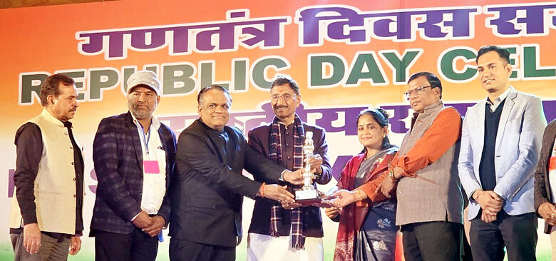 रक्षा राज्यमंत्री संजय सेठ से राजस्थान के अतिरिक्त मुख्य सचिव पर्यटन, कला, साहित्य एवं संस्कृति ने पुरस्कार किया ग्रहण
