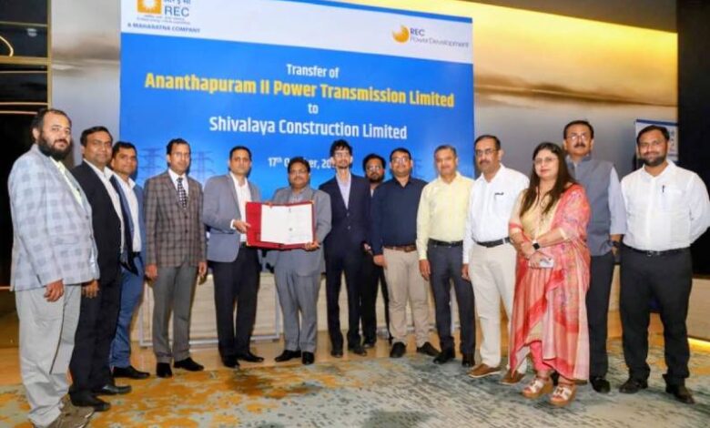 आरईसी पावर डेवलपमेंट एंड कंसल्टेंसी लिमिटेड (आरईसीपीडीसीएल), जो विद्युत मंत्रालय के तत्वावधान में महारत्न सीपीएसयू, आरईसी लिमिटेड की पूर्ण स्वामित्व वाली सहायक कंपनी है, ने टीबीसीबी रूट के तहत आईएसटीएस ट्रांसमिशन परियोजना के एक परियोजना विशिष्ट एसपीवी (स्पेशल पर्पज व्हीकल) अर्थात अनंतपुरम II पावर ट्रांसमिशन लिमिटेड को 17 अक्टूबर 2025 को मेसर्स शिवालय कंस्ट्रक्शन लिमिटेड को सौंप दिया।