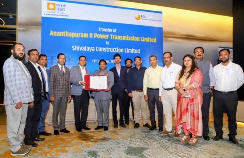 आरईसी पावर डेवलपमेंट एंड कंसल्टेंसी लिमिटेड (आरईसीपीडीसीएल), जो विद्युत मंत्रालय के तत्वावधान में महारत्न सीपीएसयू, आरईसी लिमिटेड की पूर्ण स्वामित्व वाली सहायक कंपनी है, ने टीबीसीबी रूट के तहत आईएसटीएस ट्रांसमिशन परियोजना के एक परियोजना विशिष्ट एसपीवी (स्पेशल पर्पज व्हीकल) अर्थात अनंतपुरम II पावर ट्रांसमिशन लिमिटेड को 17 अक्टूबर 2025 को मेसर्स शिवालय कंस्ट्रक्शन लिमिटेड को सौंप दिया।