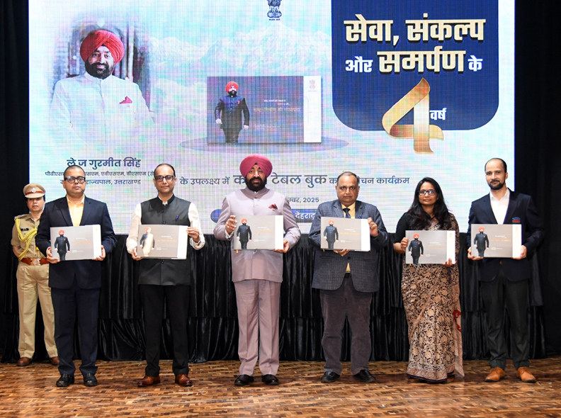 देहरादून : राज्यपाल ले.जन. गुरमीत सिंह (सेनि) ने आज राजभवन में ‘‘सेवा, संकल्प और समर्पण के चार वर्ष’’ शीर्षक कॉफी टेबल बुक का विमोचन किया । यह कॉफी टेबल बुक, राजभवन सूचना परिसर द्वारा राज्यपाल के चार वर्षों के कार्यकाल की उपलब्धियों पर आधारित है। उल्लेखनीय है कि राज्यपाल ने 15 सितम्बर को उत्तराखण्ड के राज्यपाल के रूप में चार वर्ष पूर्ण किए हैं। यह कॉफी टेबल बुक राज्यपाल के प्रेरणादायक विचारों के साथ-साथ उनके मिशन, एआई टेक्नोलॉजी, शिक्षा, महिला सशक्तीकरण, युवाओं के मार्गदर्शन एवं अन्य सामाजिक विषयों पर केंद्रित है। कार्यक्रम में राज्यपाल के चार वर्षों के कार्यकाल पर आधारित लघु फिल्म का भी प्रदर्शन किया गया। इस अवसर पर राज्यपाल ने राजभवन में कार्यरत अधिकारियों एवं कर्मचारियों को उनके उत्कृष्ट कार्यों के लिए सम्मानित भी किया। विशेष रूप से, राजभवन में 23 वर्षों से अधिक समय तक निष्ठा और समर्पण के साथ कार्य करने वाले कम्पट्रोलर श्री प्रमोद चमोली को ‘‘लाइफटाइम अचीवमेंट अवार्ड’’ से सम्मानित किया गया। लंबे समय तक विभिन्न दायित्वों का निर्वहन करते हुए उन्होंने राजभवन के गृहस्थ अनुभाग का संचालन और आयोजन व्यवस्थाओं में उत्कृष्ट प्रबंधन और प्रतिबद्धता का परिचय दिया है। राज्यपाल ने कहा कि श्री चमोली ने अपनी सेवाओं से प्रशासनिक कार्यप्रणाली में अनुशासन, दक्षता और पारदर्शिता को भी सुनिश्चित किया है। उन्होंने अन्य सम्मानित अधिकारियों एवं कर्मचारियों को बधाई देते हुए कहा कि यह पुरस्कार आपके कार्य के प्रति ईमानदारी, समर्पण और कर्तव्यनिष्ठा का परिणाम है। उन्होंने सभी से अपेक्षा की कि वे इसी लगन और निष्ठा के साथ आगे भी कार्य करते रहें। राज्यपाल ने कहा कि सम्मानित अधिकारी एवं कर्मचारी अन्य सभी के लिए प्रेरणादायक उदाहरण हैं। राज्यपाल ने कहा कि राजभवन पूरे प्रदेश का प्रतिनिधित्व करता है जिसमें अधिकारियों एवं कर्मचारियों की कार्यशैली बेहद महत्वपूर्ण हो जाती है। उन्होंने कहा कि आप सभी लोगों की समस्याओं के प्रति सजगता से कार्य करते हुए उनका ससमय निस्तारण के लिए कार्य करें। राजभवन से लोगों के मध्य एक अच्छा संदेश जाए इसमें सभी कर्मियों की बेहद महत्वपूर्ण भूमिका है।