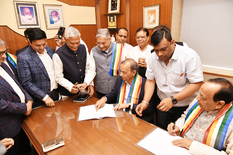 नई दिल्ली : जैन श्वेताम्बर तेरापंथ धर्मसंघ की ‘संस्था शिरोमणि’ जैन श्वेताम्बर तेरापंथी महासभा के सत्र 2026-28 के नवनिर्वाचित पदाधिकारियों का दायित्व स्वीकरण उत्सव महासभा प्रधान कार्यालय, कोलकाता में गरिमामय एवं भावपूर्ण वातावरण में संपन्न हुआ। दोपहर में जैन संस्कार विधि से पूजन-अर्चन के उपरान्त शुभ मुहूर्त में नवनिर्वाचित पदाधिकारियों ने महासभा कार्यालय में प्रवेश कर विधिवत दायित्व ग्रहण किया। निवर्तमान अध्यक्ष श्री मनसुखलाल सेठिया ने नवनिर्वाचित अध्यक्ष श्री महेन्द्र नाहटा को दायित्व हस्तांतरित किया। इस अवसर पर महासभा के पाँच पूर्व अध्यक्ष एवं पाँच पूर्व प्रधान न्यासी विशेष रूप से उपस्थित रहे।