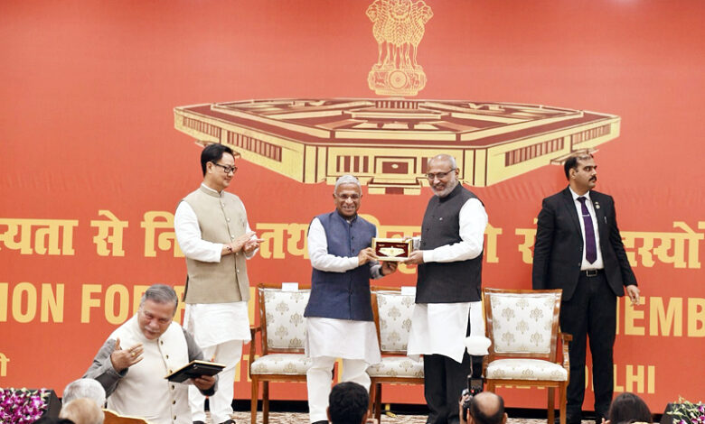 नई दिल्ली : राज्यसभा के सेवानिवृत्त एवं सेवानिवृत्त हो रहे सदस्यों के सम्मान में बुधवार को उपराष्ट्रपति एन्क्लेव में एक गरिमामय विदाई समारोह आयोजित किया गया। कार्यक्रम में वर्ष 2025 में सेवानिवृत्त हुए 26 तथा वर्ष 2026 में सेवानिवृत्त/सेवानिवृत्त हो रहे 73 सदस्यों को सम्मानित किया गया। इनमें राज्यसभा के उपसभापति श्री हरिवंश भी शामिल हैं।