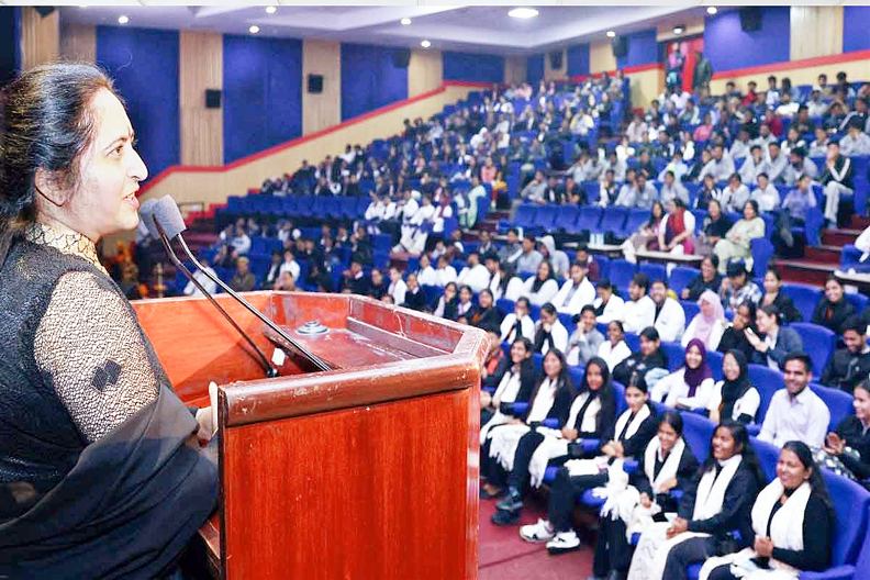 तीर्थंकर महावीर यूनिवर्सिटी, मुरादाबाद के रोड सेफ्टी क्लब और उत्तर प्रदेश पुलिस की ओर से यातायात माह के तहत रोड सेफ्टी को लेकर हुए व्यापक जनजागरूकता कार्यक्रम में एसपी ट्रैफिक श्री सुभाष गंगवार ने अपने सारगर्भित संबोधन में युवाओं से अपील की कि वे स्वयं जागरूक बनें और दूसरों को भी सुरक्षित यातायात नियमों के लिए प्रेरित करें। योग गुरू श्रीमती ऋतु नारंग ने कहा कि सड़क सुरक्षा केवल नियम नहीं, बल्कि एक नैतिक दायित्व भी है। सीओ हाईवे श्री राजेश कुमार ने स्टुडेंट्स से कहा, वाहन चलाते समय हेलमेट, सीट बेल्ट और गति सीमा के नियमों का पालन करना अनिवार्य है। इससे पूर्व मां सरस्वती के समक्ष दीप प्रज्जवलित करके ऑडी में कार्यक्रम का शुभारम्भ हुआ।