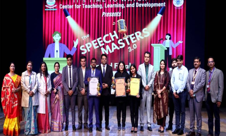 तीर्थंकर महावीर यूनिवर्सिटी, मुरादाबाद के सेंटर फॉर टीचिंग, लर्निंग एंड डवलपमेंट- सीटीएलडी की ओर से आयोजित भाषण प्रतियोगिता- स्पीचमास्टर 3.0 में कॉलेज ऑफ लॉ एंड लीगल स्टडीज़ के बीए-एलएलबी-ऑनर्स की छात्रा समृद्धि शर्मा विजेता रही। फैकल्टी ऑफ एजुकेशन के बीए-बीएड के छात्र अतिंद्र कुमार झा ने द्वितीय और बीएससी-बीएड की छात्रा मान्या शर्मा ने तृतीय स्थान प्राप्त किया। इससे पूर्व सीटीएलडी के डायरेक्टर प्रो. पंकज कुमार सिंह, आईक्यूएसी के डायरेक्टर डॉ. निशीथ कुमार मिश्रा, वीवो के डीजीएम- एचआर श्री तक्ष कुमार, असिस्टेंट डायरेक्टर एकेडमिक्स डॉ. नेहा आनंद आदि ने मां सरस्वती के समक्ष द्वीप प्रज्ज्वलित करके ऑडी में स्पीचमास्टर 3.0 का शुभारम्भ किया। कार्यक्रम में 315 छात्रों में से 36 छात्रों ने फाइनल राउंड में जगह बनाते हुए ऑन-द-स्पॉट स्पीच दी। हर प्रतिभागी को मंच पर जाने से मात्र चार मिनट पहले विषय दिया गया, जिससे उनकी सोचने और त्वरित विचार प्रस्तुत करने की क्षमता का परीक्षण किया गया।