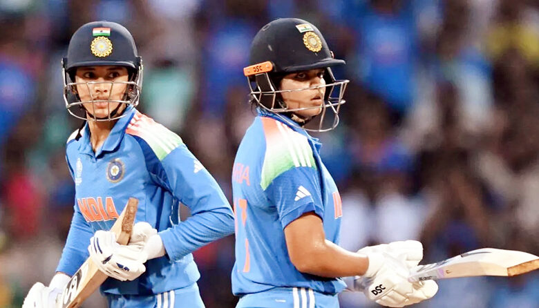 उपकप्तान स्मृति मंधाना और शैफाली वर्मा की सलामी जोड़ी ने जोश के साथ होश दिखाते हुए शतकीय भागीदारी की। स्मृति मंधाना ने पारी के 18 वें दक्षिण अफ्रीका की बाएं हाथ की स्पिनर चोल ट्रायोन के पहले ओवर की ऑफ स्टंप पर पड़ कर जरा बाहर निकलती चौथी गेंद को कट करने की कोशिश में विकेटकीपर सिनोलो जफा को कैच थमा दिया और भारत ने पहला विकेट 104 पर खोया। शैफाली ने इसी ओवर की आखिरी गेंद को लॉन्ग ऑन पर खेल कर एक रन लेकर 49 गेंदों में एक छक्के और पांच चौकों की मदद से अपना तीन बरस में पहला वन डे अंतर्राष्ट्रीय क्रिकेट अर्द्धशतक पूरा किया। शेफाली वर्मा(56) पारी के 21 वें और लेग स्पिन लूज सुन के तीसरे ओवर की पहली ही गेंद को स्लॉग स्वीप करने गई गेंद उनके बल्ले का बाहरी किनारा ले उछली लेकिन डीप मिड विकेट पर बॉश ने कैच छोड़ा तब भारत का स्कोर एक विकेट पर 114 रन था। ऑस्ट्रेलिया के खिलाफ सेमीफाइनल में शतक जड़ने वाली जेमिमा रॉड्रिग्ज ने लूज की गेंद पर एक्सट्रा कवर मं अपनी पारी का पहला चौका जड़ा।