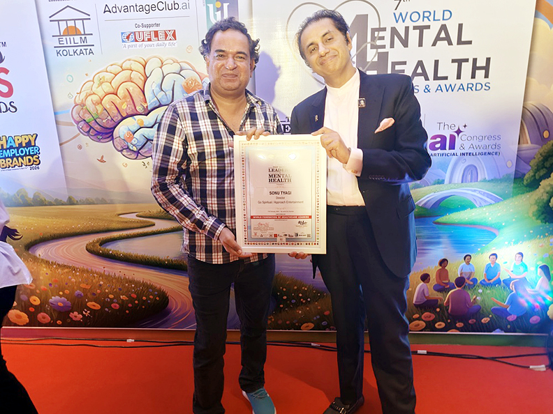 मुंबई: मानसिक स्वास्थ्य और आध्यात्मिक जागरूकता के क्षेत्र में उल्लेखनीय योगदान के लिए सोनू त्यागी, संस्थापक गो स्पिरिचुअल और एप्रोच एंटरटेनमेंट, को 7वें वर्ल्ड मेंटल हेल्थ कांग्रेस एंड अवॉर्ड्स में “टॉप मोस्ट लीडर इन मेंटल हेल्थ” अवार्ड से सम्मानित किया गया। यह अवार्ड फन एंड जॉय एट वर्क द्वारा प्रदान किया गया और वर्ल्ड फेडरेशन ऑफ हेल्थकेयर लीडर्स द्वारा प्रमाणित किया गया। यह भव्य समारोह मुंबई के प्रतिष्ठित ताज लैंड्स एंड में आयोजित हुआ।
