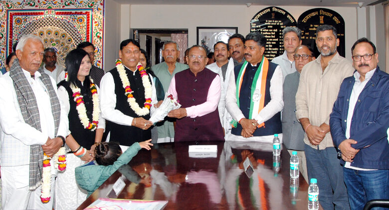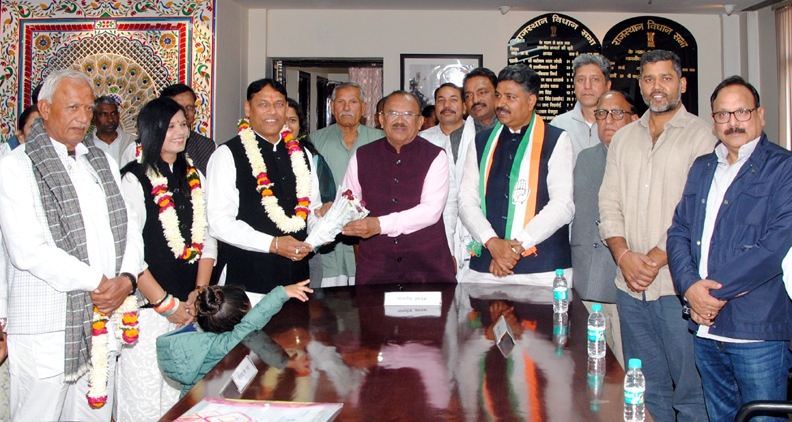 जयपुर : राजस्थान विधानसभाध्यक्ष वासुदेव देवनानी ने मंगलवार को विधान सभा में अंता विधानसभा उप चुनाव में नव निर्वाचित विधायक प्रमोद जैन भाया को विधान सभा सदस्य पद की शपथ दिलाई। जैन ने हिंदी में विधान सभा सदस्य पद की शपथ ग्रहण की। विधान सभा अध्यक्ष देवनानी ने नव निर्वाचित विधायक को बधाई एवं शुभकामनाये दी। इस अवसर पर विधान सभा में नेता प्रतिपक्ष टीकाराम जूली, विधायकगण, विधान सभा के प्रमुख सचिव भारत भूषण शर्मा सहित विधान सभा के अधिकारीगण मौजूद थे