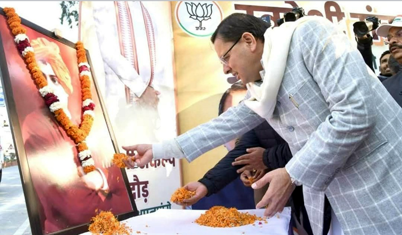देहरादून : युवा दिवस के अवसर पर मुख्यमंत्री श्री पुष्कर सिंह धामी ने गांधी पार्क देहरादून में स्वदेशी संकल्प दौड़ का शुभारंभ किया। इस अवसर मुख्यमंत्री ने स्वामी विवेकानंद जी के चित्र पर श्रद्धा सुमन अर्पित कर उनको नमन किया। इस दौरान स्वदेशी उत्पादों को बढ़ावा देने वाली संस्थाओं को भी सम्मानित किया गया।