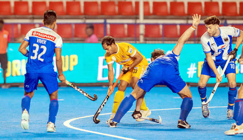 सूरमा हॉकी क्लब ने धैर्य से आगाज किया और उसके गोलरक्षक बेल्जियम के विंसेंट वनाश ने पहले क्वॉर्टर में तमिलनाडु ड्रैगंस के कप्तान अमित रोहिदास और स्ट्राइकर विक्टर वेगनेज के हमलों को रोका। दूसरे क्वॉर्टर में जोरदार संघर्ष देखने को मिला। सेल्वाराज कंगराज ने दूसरा क्वॉर्टर खत्म होने से दो मिनट पहले चंदन यादव द्वारा दाएं से मिले पास पर गेंद को संभाल कर गोल कर तमिलनाडु ड्रैगंस का खाता खोला। तेज तर्रार स्ट्राइकर उत्तम सिंह ने दूसरा क्वॉर्टर खत्म होने से ठीक पहले डी के भीतर रिवर्स हिट से गोल कर तमिलनाडु ड्रैगंस की बढ़त 2-0 कर हाफ तक उसे 2-0 की बढ़त दिला दी।