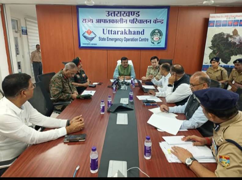 देहरादून : मुख्य सचिव श्री आनंद बर्द्धन ने राज्य आपातकालीन परिचालन केंद्र पहुंचकर धराली में संचालित राहत और बचाव कार्यों की समीक्षा की। उन्होंने शासन तथा सेना के वरिष्ठ अधिकारियों के साथ चर्चा कर रेस्क्यू अभियान को और अधिक तीव्र गति से संचालित किए जाने को लेकर दिशा-निर्देश दिए।