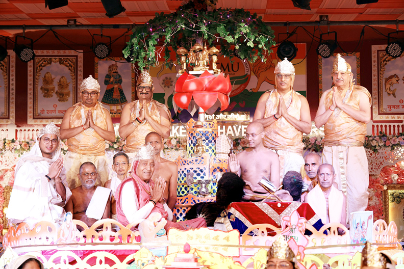 भक्ति, श्रद्धा और ज्ञान की अद्भुत त्रिवेणी श्री मज्जिनेन्द्र कल्पद्रुम महामंडल विधान में हजारों पुण्यार्जक श्रद्धालुओं ने भक्तिभाव से समर्पित किए अर्घ्य, कुलाधिपति श्री सुरेश जैन और फर्स्ट लेडी श्रीमती वीना जैन ने प्रज्ञाश्रमण उपाध्याय श्री 108 प्रज्ञानंद जी महामुनिराज के पावन चरणों में शीश नवाकर जाने-अनजाने कोई भी त्रुटि, प्रमाद या भूल के लिए मांगी उत्तम क्षमा
