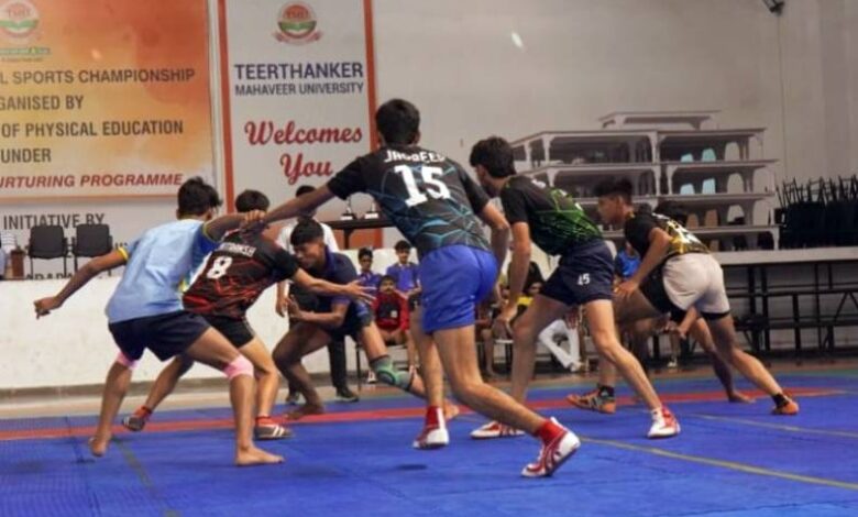 तीर्थंकर महावीर यूनिवर्सिटी, मुरादाबाद के टिमिट कॉलेज ऑफ़ फिजिकल एजुकेशन की ओर से ग्रास रूट नरचरिंग प्रोग्राम के तहत इण्टर स्कूल कबड्डी चैंपियनशिप में साईं इंटरनेशनल स्कूल, बिजनौर ने घनश्याम दास टंडन स्कूल, अमरोहा को 87-53 प्वाइंट्स के विशाल स्कोर से मात देकर चैंपियनशिप की ट्रॉफी अपने नाम की। साईं इंटरनेशनल स्कूल ने टॉस जीतकर रेड करने का निर्णय लिया। फाइनल मुकाबले में 43 प्वाइंट्स लेकर ईशांत बेस्ट रेडर और 26 प्वाइंट्स लेकर अनिकेत बेस्ट डिफेंडर चुने गए। पुरस्कार वितरण समारोह में कॉलेज ऑफ़ पैरामेडिकल साइंसेज के प्राचार्य प्रो. नवनीत कुमार, एजुकेशन कॉलेज के प्राचार्य डॉ. विनोद कुमार जैन, चीफ प्रॉक्टर एवम् लॉ कॉलेज के प्राचार्य प्रो. एसके सिंह और फिजिकल एजुकेशन कॉलेज के प्राचार्य प्रो. मनु मिश्रा ने चैंपियन टीम साईं इंटरनेशनल स्कूल, बिजनौर को विजेता ट्रॉफी और सभी खिलाड़ियों को गोल्ड मेडल देकर सम्मानित किया।