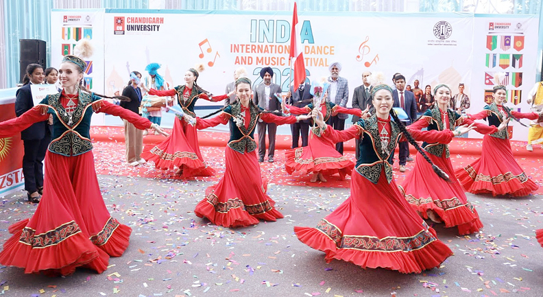 चंडीगढ़ : चंडीगढ़ यूनिवर्सिटी में दो दिवसीय 11वें इंडिया इंटरनेशनल डांस एंड म्यूजिक फेस्टिवल-2026 की धूम-धाम के साथ शुरुआत हो गई है। यह इंडियन काउंसल फॉर कल्चरल रिलेशंस (आईसीसीआर) के सहयोग से चंडीगढ़ यूनिवर्सिटी में करवाए जा रहे फेस्टिवल का थीम ’एक दुनिया अनेक सांस्कृतियां’ पर आधारित है। इसमें 33 देशों के 350 से ज्यादा कलाकार हिस्सा ले रहे हैं। जोकि अपने देशों के डांस, संगीत व कला की प्रस्तुतियां दे रहे हैं। यह समागम वैश्विक एकता और सांस्कृतिक विविधता का संदेश दे रहा है।