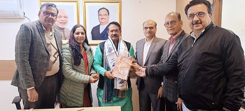 नई दिल्ली : अणुविभा के राष्ट्रीय अध्यक्ष प्रतापसिंह दुगड़ ने केन्द्रीय सड़क परिवहन और राज मार्ग राज्य मंत्री हर्ष मल्होत्रा को नई दिल्ली में तुलसी अणुव्रत सिंहनाद विशेषांक की प्रति भेंट की । यह विशेषांक अणुव्रत आंदोलन के प्रवर्तक आचार्य श्री तुलसी के पावन जन्म की 111 वर्ष पूरे होने पर प्रकाशित किया गया है।