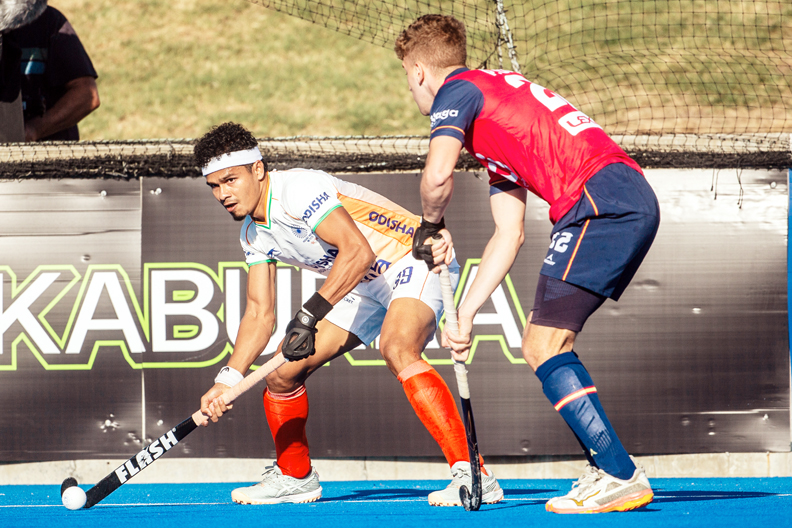 नई दिल्ली : नए कप्तान सेंटर हाफ हार्दिक सिंह की कप्तानी में एफआईएच पुरुष हॉकी प्रो लीग 2025-26 के होबार्ट चरण में भारत की हार का सिलसिला नहीं थमा। हरमनप्रीत सिंह की अगुआई में राउरकेला चरण में चारों मैच हारने वाली भारतीय टीम होबार्ट चरण के अपने पहले मैच में शनिवार को स्पेन से 0-2 से हार गई। स्पेन को जहां मौके भुनाने के चलते जीत मिली वहीं मके गंवाने के चलते भारत के हिस्से हार आई। स्पेन ने इग्नेशियो अबाजो के छठे मिनट और इग्नेशियो कोबोज के 36 वें दागे एक एक गोल से भारत से मैच जीता। स्पेन ने मौकों को भुनाने के साथ अनुशासित हो अपने किले की चौकसी कर जीत हासिल की।