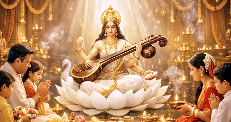 पुराणों के अनुसार, जब ब्रह्मा जी ने सृष्टि की रचना की, तब उन्हें चारों ओर मौन और निस्तब्धता अनुभव हुई। उस नीरवता को तोड़ने के लिए उन्होंने अपने कमंडल से जल छिड़का, जिससे एक दिव्य देवी प्रकट हुईं, जिनके हाथों में वीणा थी। जैसे ही उन्होंने वीणा का मधुर नाद छेड़ा, संसार को वाणी, शब्द और अभिव्यक्ति का वरदान मिला। वह दिन माघ शुक्ल पंचमी का ही था, इसीलिए इसे देवी सरस्वती का जन्मदिन माना जाता है। यह कथा केवल पौराणिक आख्यान नहीं, बल्कि इस सत्य का प्रतीक है कि ज्ञान और वाणी के बिना सृष्टि भी अधूरी है।