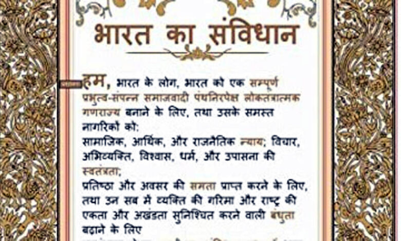“हम भारत के लोग” संविधान की प्रस्तावना आदर्श वाक्यांश