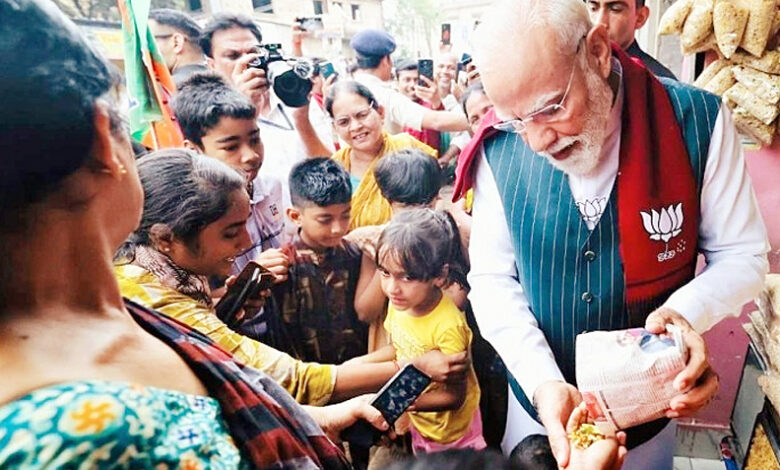 प्रचार अभियान के बाद जब पीएम मोदी का काफिला झारग्राम के जंगलमहल क्षेत्र में हेलीपैड की ओर बढ़ रहा था, तभी अचानक कॉलेज मोड़ के पास काफिला रुका। प्रधानमंत्री कार से उतरे और एक छोटी-सी दुकान की ओर चल पड़े। उन्होंने दुकानदार से कहा — मुझे झालमुड़ी खिलाओ। 10 रुपए की झालमुड़ी बनवाई और दुकानदार को रुपए दिए। झारग्राम की व्यस्त सड़कों के किनारे झालमुड़ी बेचने वाले विक्रम शॉ के लिए वह क्षण किसी सुनहरे सपने के सच होने जैसा था, जब देश के प्रधानमंत्री खुद उनकी दुकान पर चलकर आए।