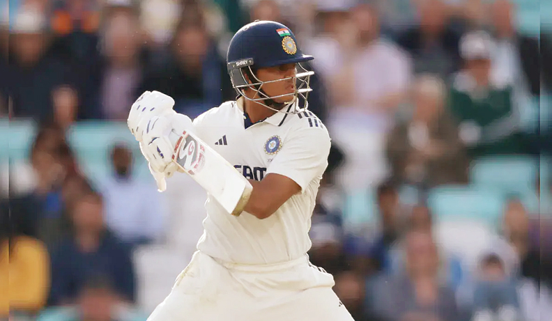 यशस्वी जायसवाल (118 रन, 164 गेंद, दो छक्के, 14 चौके) ने अपना 23 वां टेस्ट खेलते हुए इंग्लैंड के तेज गेंदबाज जोश टंग की वाइट और शॉर्ट गेंद पर रैम्प शॉट खेलने की कोशिश में बैकवर्ड पॉइंट पर जैमी ओवरटन को कैच थमा पारी के 65 वें ओवर में छठे बल्लेबाज के रूप में चायकाल से करीब आधा घंटा पहले आउट होकर पैवेलियन लौटे। यशस्वी मौजूदा सीरीज के लीडस के पहले टेस्ट की पहली पारी में भी शतक जड़ा था और ओवल में सीरीज का समापन पांचवें व आखिरी टेस्ट की दूसरी पारी में भी शतक जड़ कर किया। यशस्वी ने अपने टेस्ट करियर का छठा और इंग्लैंड के खिलाफ चौथा शतक जड़ा। यशस्वी को 20 रन के स्कोर पर स्लिप में, हैरी ब्रुक ने 40 रन लॉन्ग लेग पर स्थानापन्न फील्डर लियाम डासन और बेन डकेट ने 110 रन पर उनके कैच टपका कर जो तीन जीवनदान दिए उसका उन्होंने पूरा लाभ उठाया। यशस्वी के रूप में भारत ने अपना छठा विकेट 273 रन के स्कोर पर खोया। जुरेल ने जोश टंग के 26 वें चायकाल से पहले ओवर की शुरू की दो गेंदो पर लगातार दो चौके जड़ने के बाद चौथी गेंद दो रन ले भारत के स्कोर को 300 पर पहुंचाया और अंतिम गेंद पर 3 तीन रन लिए और इस ओवर में 13 रन बनाए।